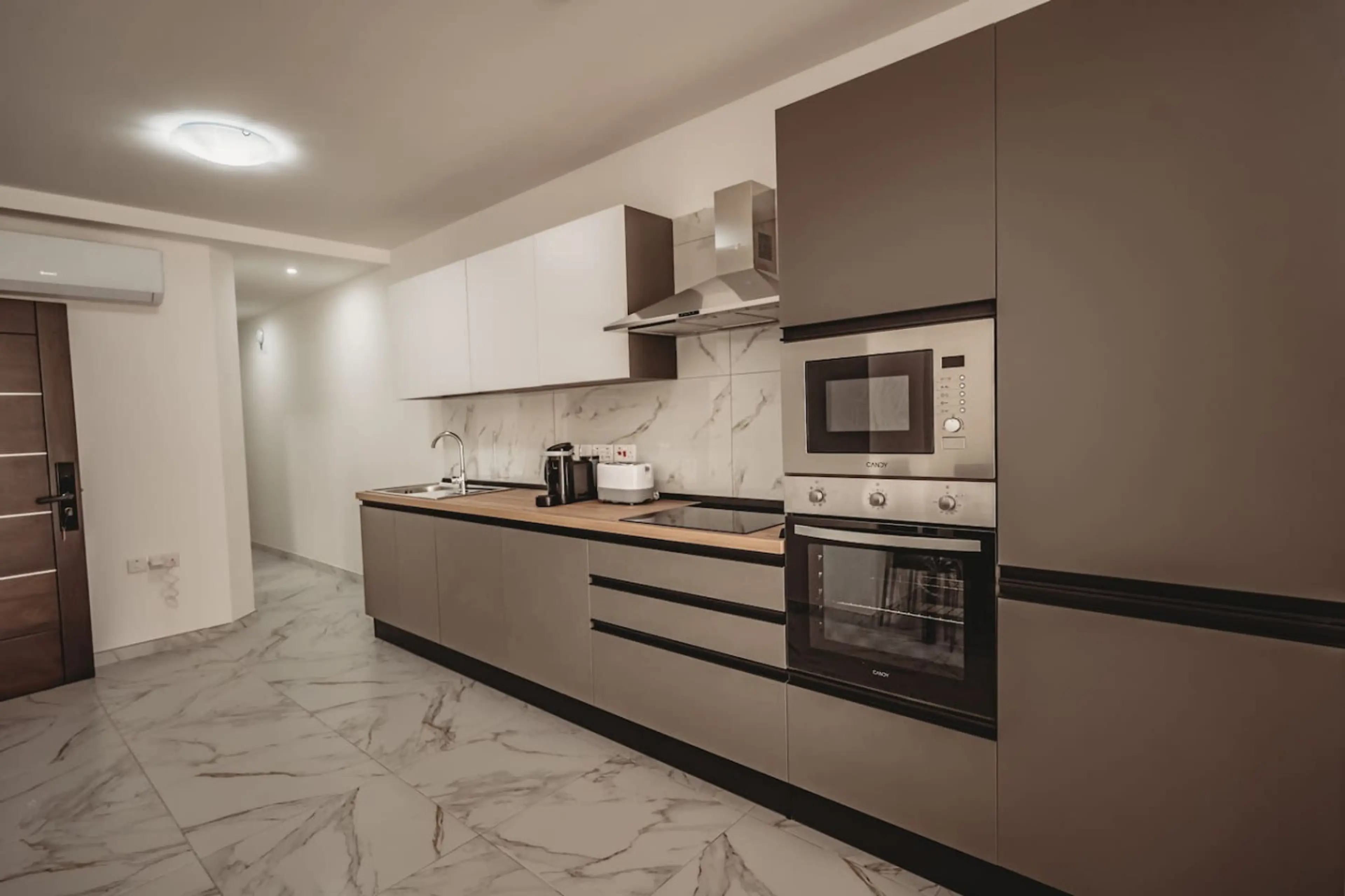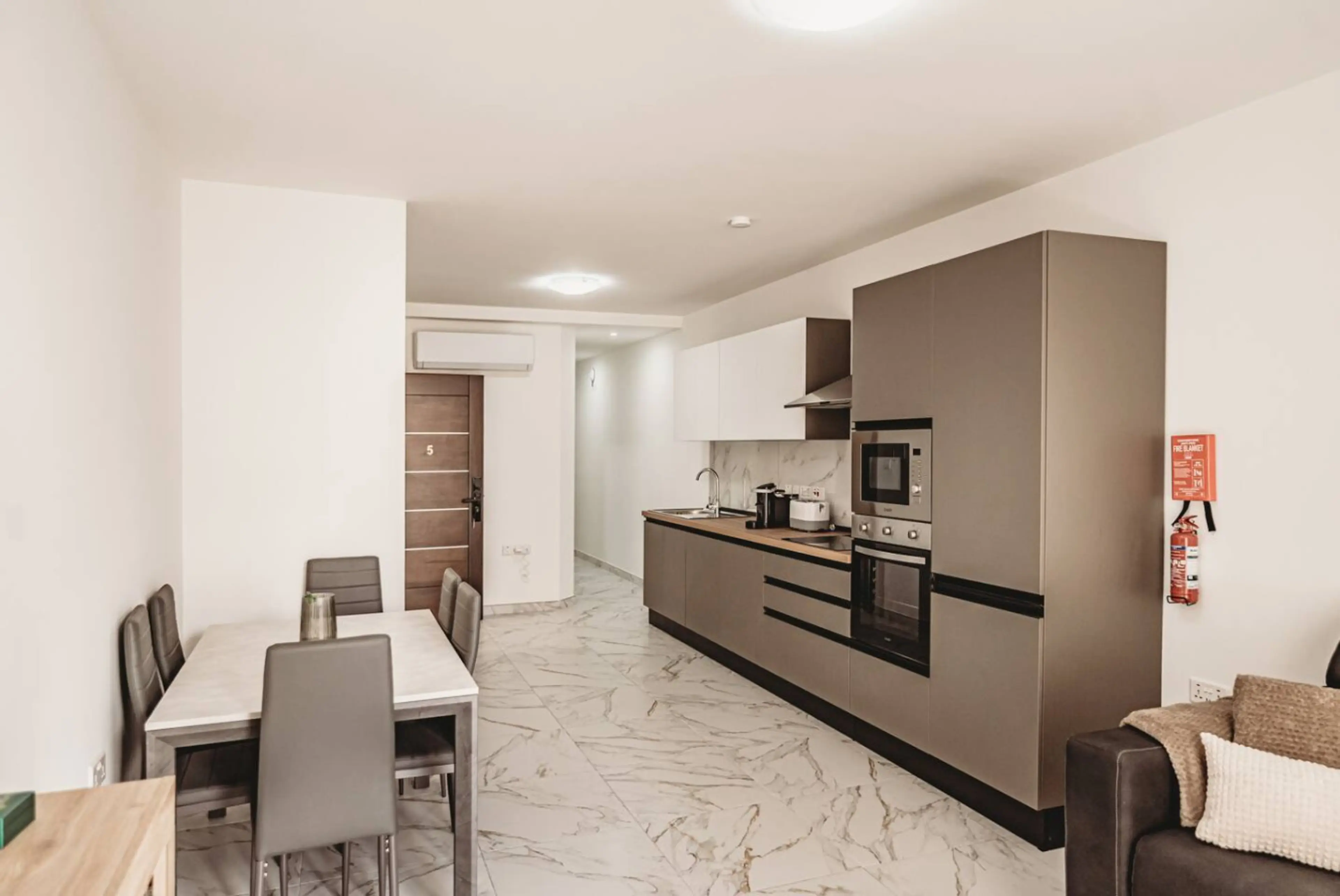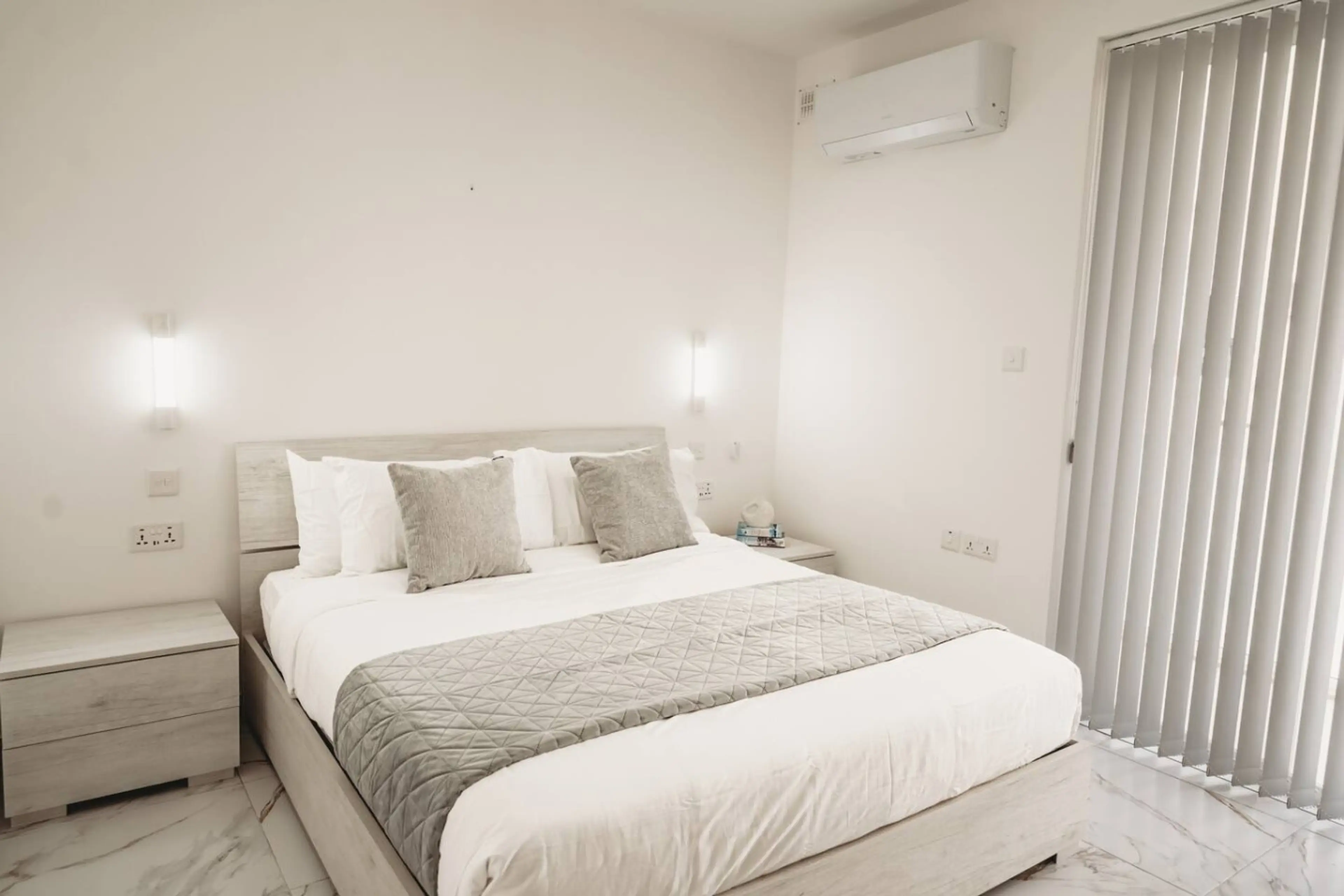 Modern 1-bedroom apartment at Qamar Residence, Gżira, sleeps 4. Features a double bedroom with an en-suite bathroom, a second bathroom, a double sofa bed in the living area, and an additional room for extra space. Includes front and back balconies. Fast fibre Wi-Fi, smart A/C, and a fully equipped ...