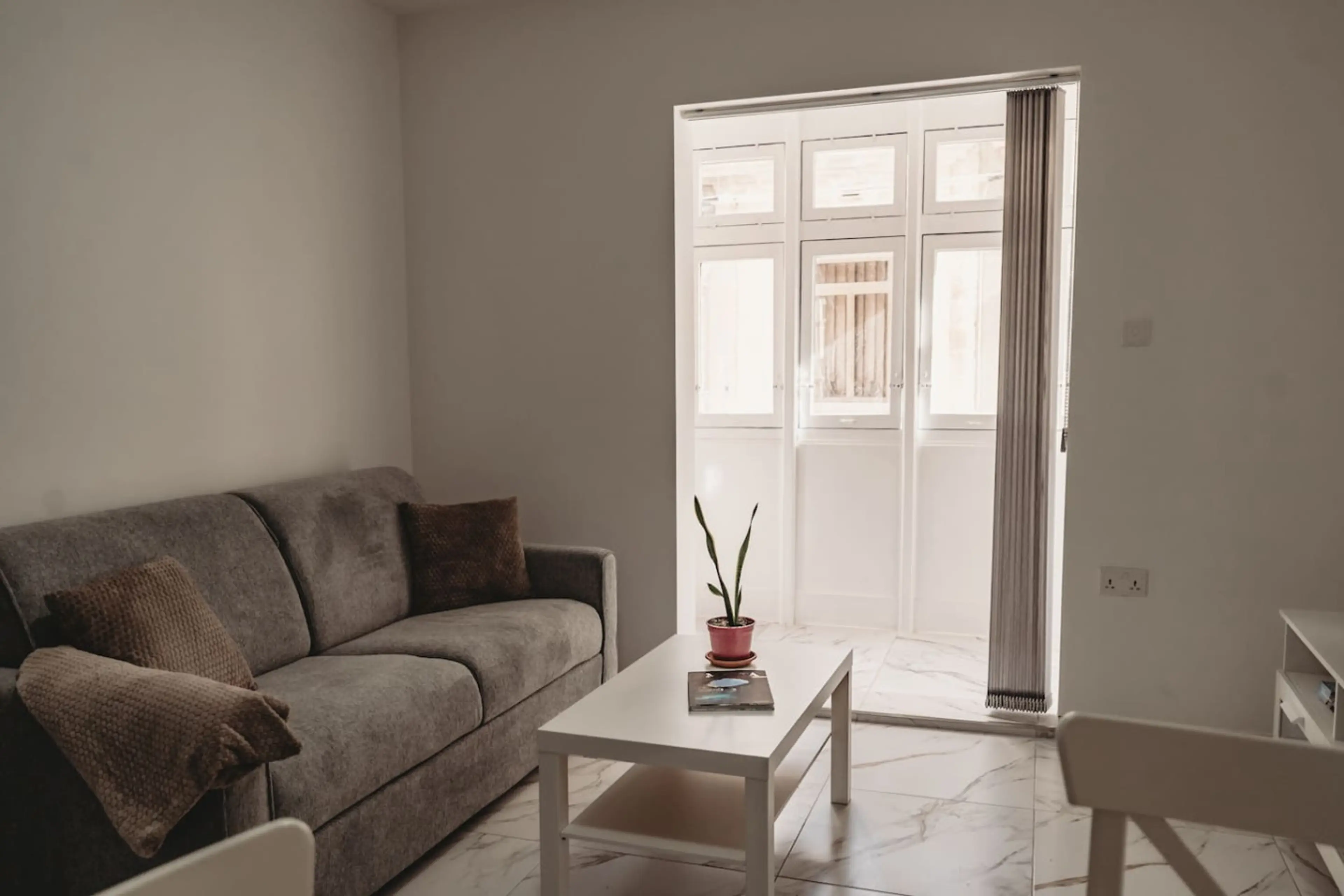Modern 1BR apartment at Qamar Residence, Gżira, sleeps 4. Features a double bedroom with an en suite, a second bathroom, a double sofa bed, and an additional room for extra space. Includes front and back balconies, with a traditional Maltese wooden balcony overlooking Triq il-Flotta. Fast fibre Wi-F...