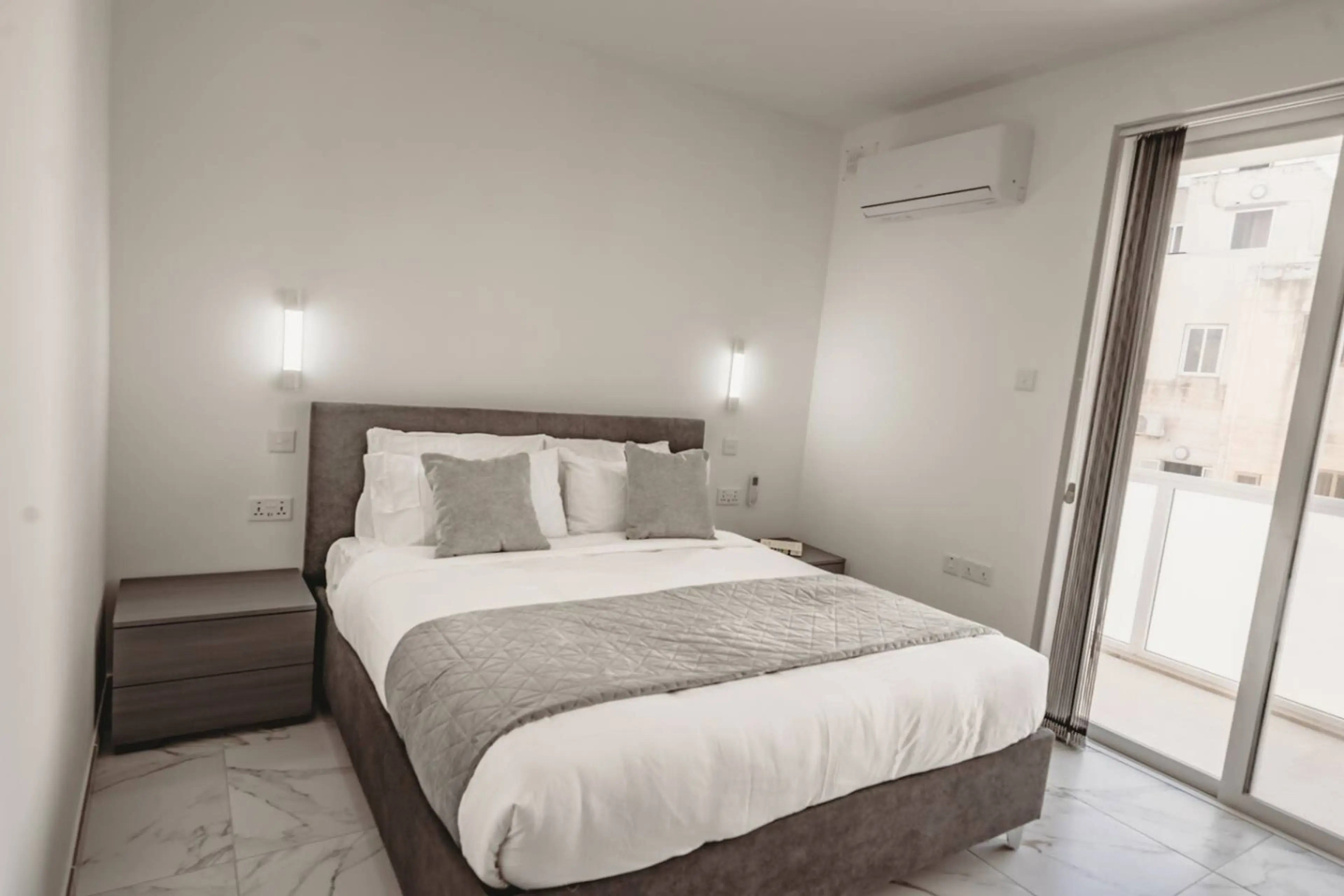 Modern 1-bedroom apartment at Qamar Residence, Gżira, sleeps 4. Includes a double bedroom with en suite, a second bathroom, a double sofa bed, and an additional room for extra space. Features front and back balconies, fast fibre Wi-Fi, smart A/C, and a fully equipped kitchen. Close to the seafront, ...