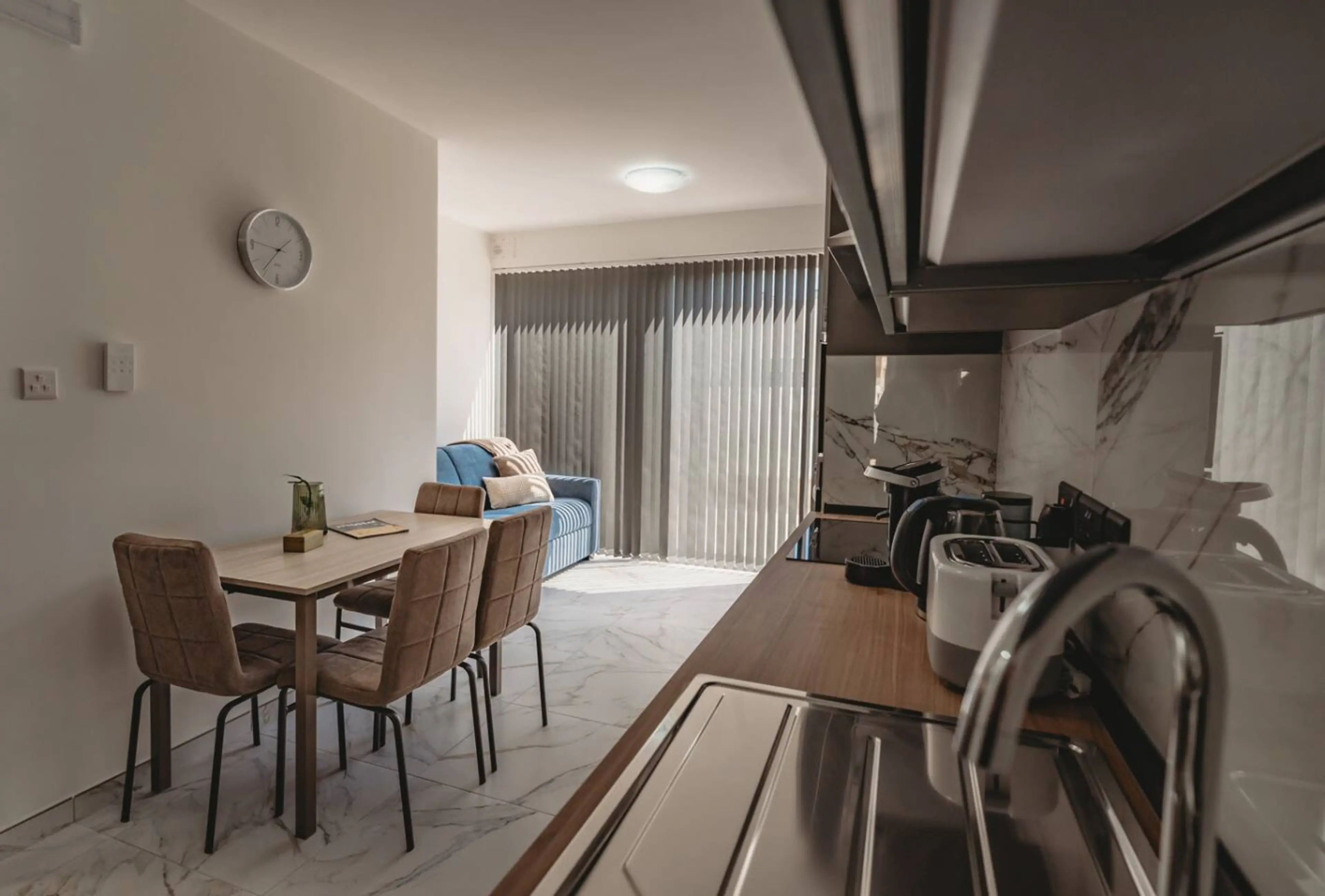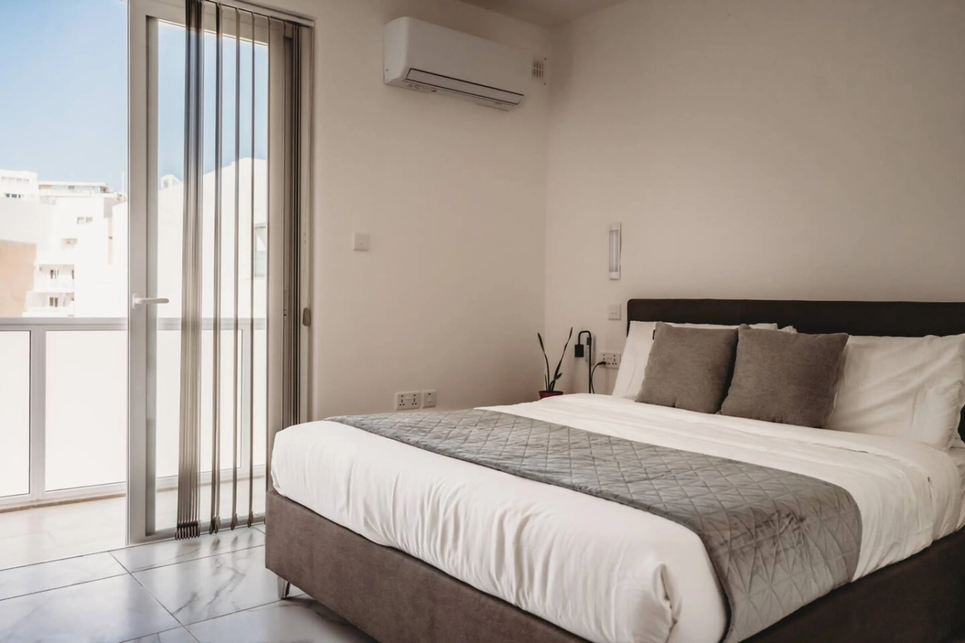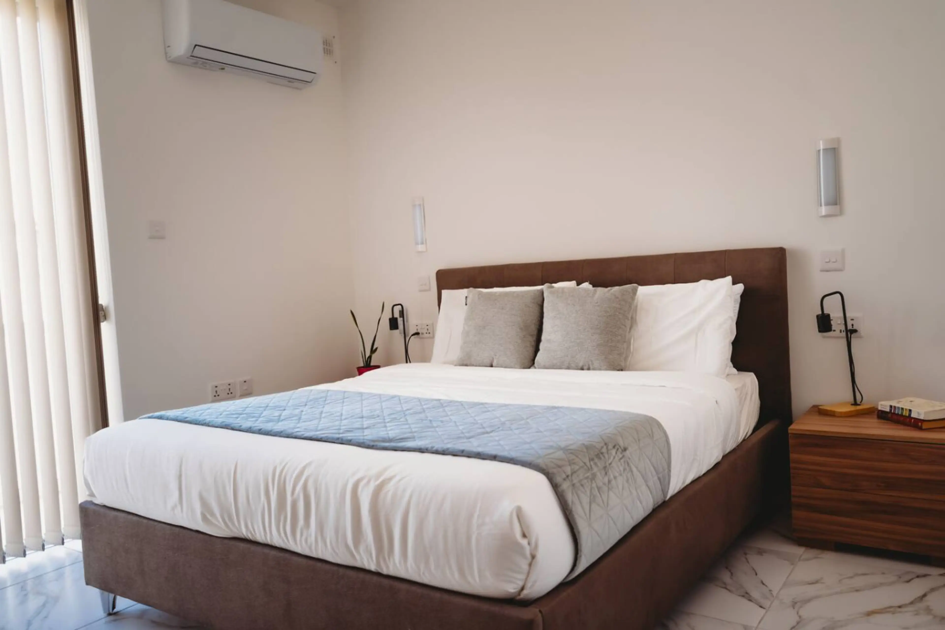 Modern 1-bedroom penthouse at Qamar Residence, Gżira, sleeps 4. Includes a double bedroom with en suite, a second bathroom, a double sofa bed, and an additional private room set up as a workspace with desk, ergonomic chair and 27” FHD IPS monitor with height adjustment. Features a private terrace, f...